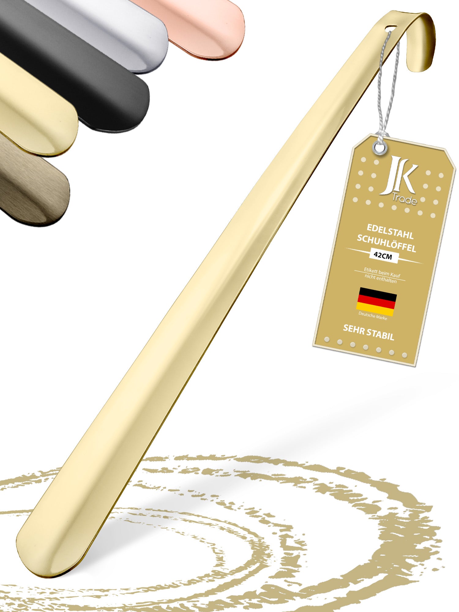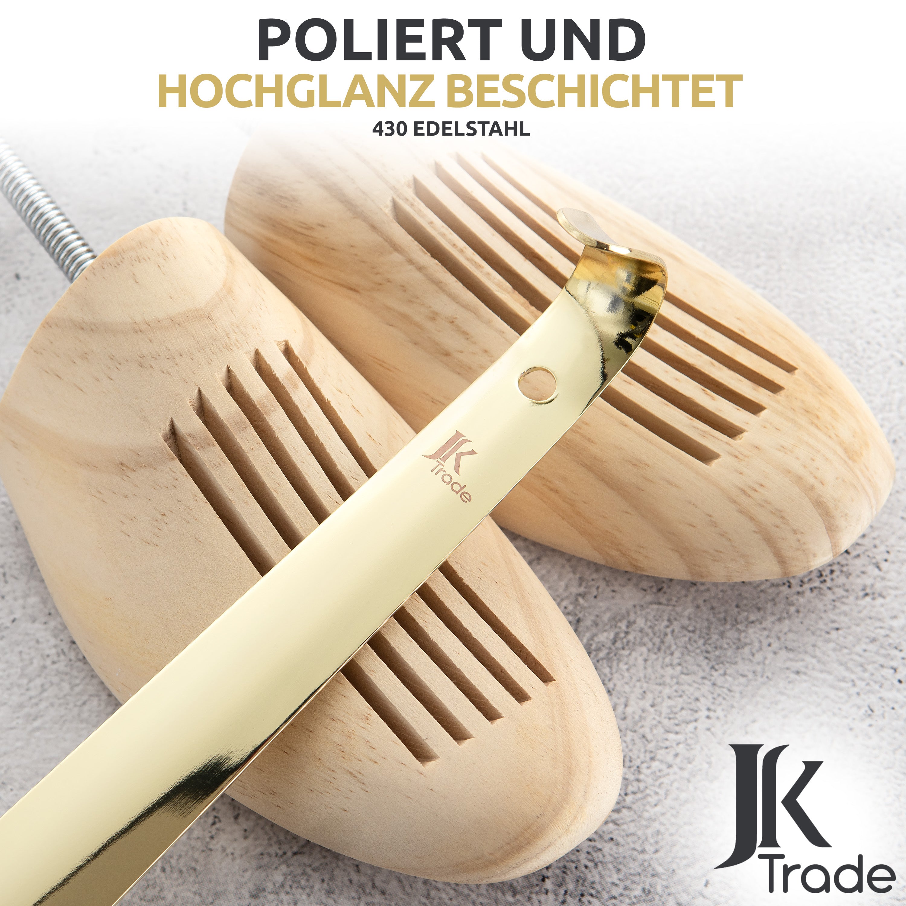 JK Trade® 42cm STABILER Edelstahl Schuhlöffel Lang Gold | 2mm Stärke - Sehr Stabil