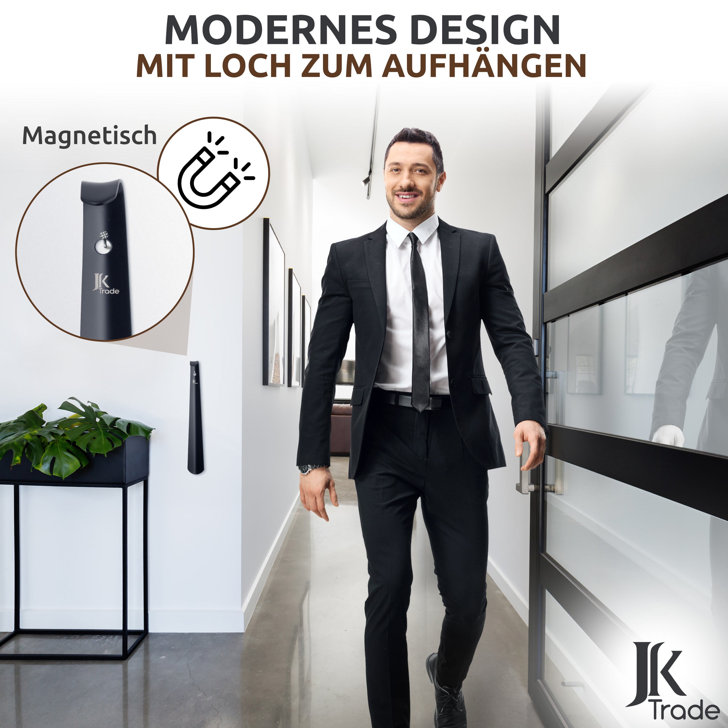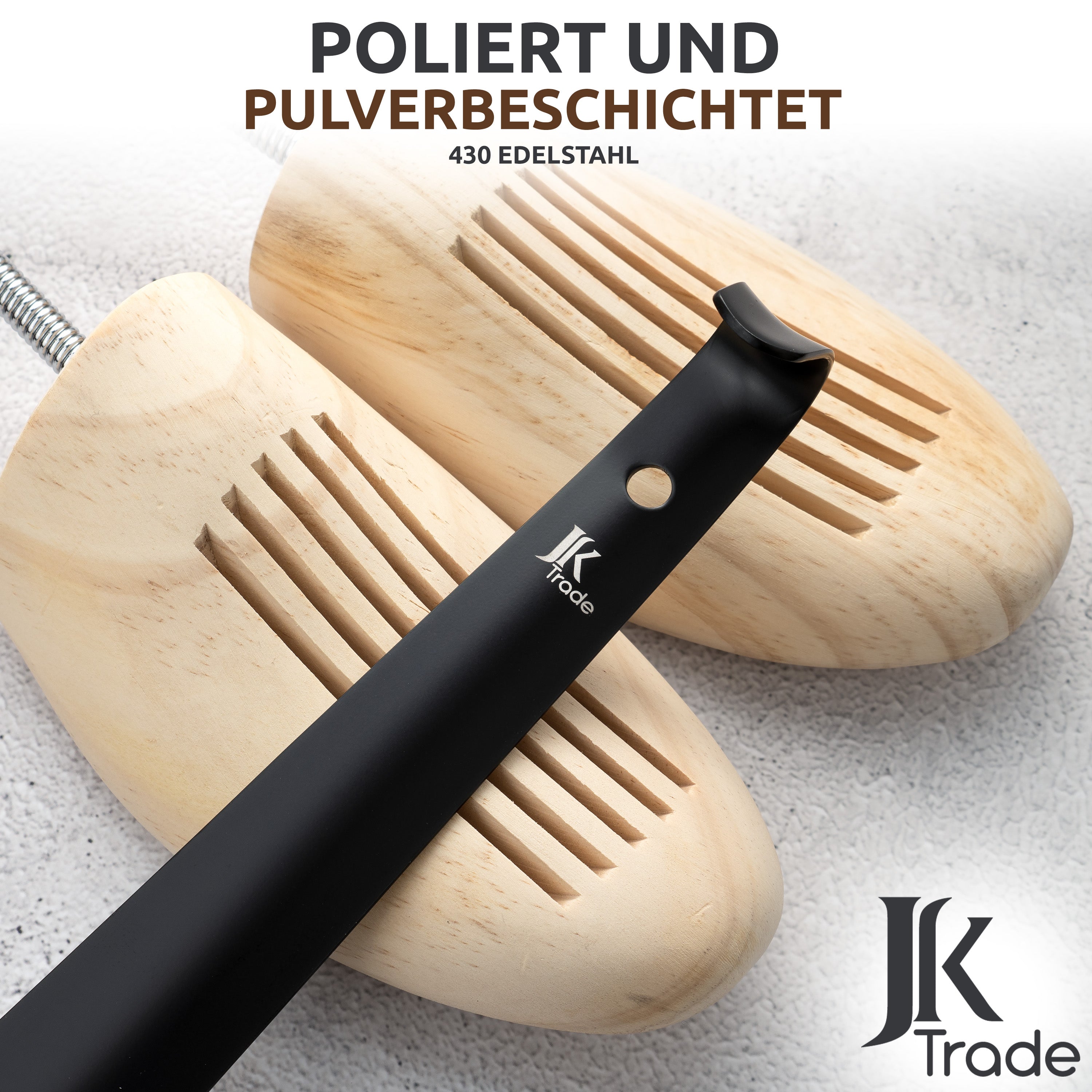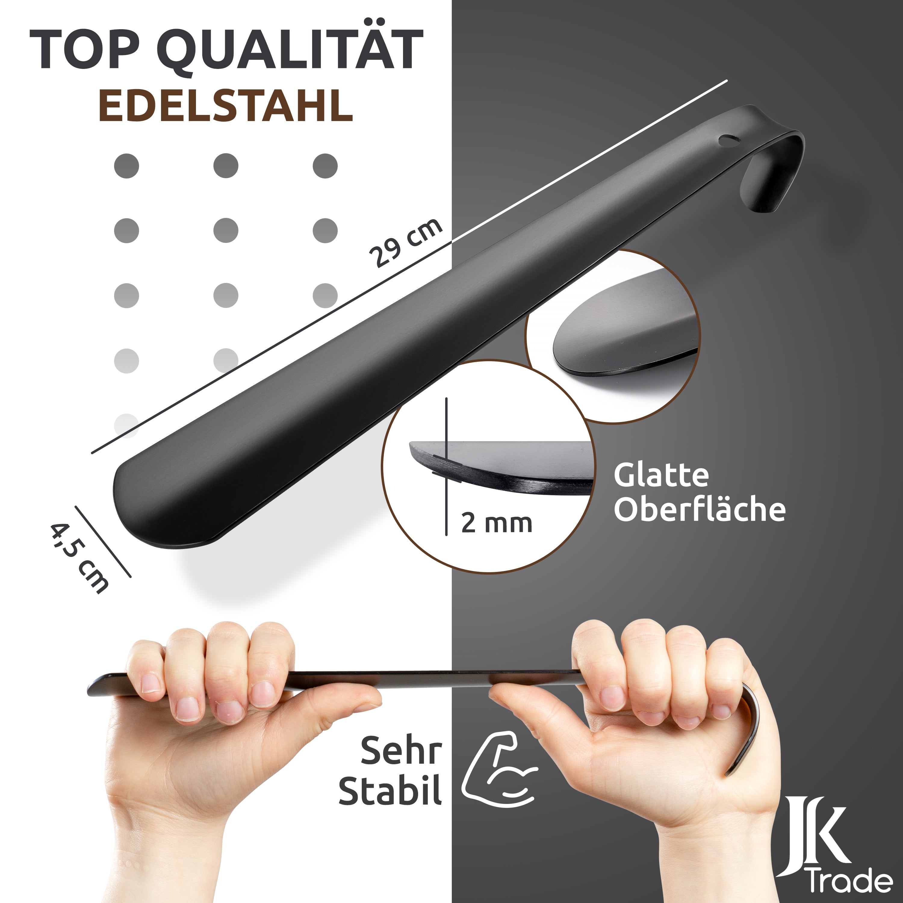 JK Trade® 29cm STABILER Edelstahl Schuhlöffel Schwarz pulverbeschichtet